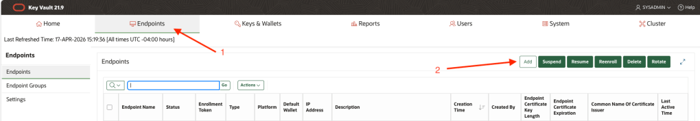 After logging in successfully, click the Endpoints tab, then click the Add button