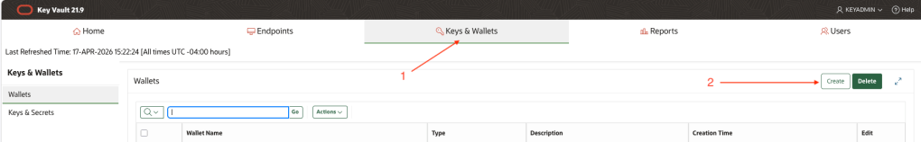 Click the Keys & Wallets tab, then click, Create.