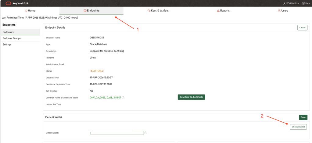 Select the Endpoints tab, the click Choose Wallet